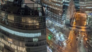 高い所から見下ろす構図 光が反射してきれい 写真にある全ての建造物は人間が作ったんだと思うと、そのすごい力に圧倒される😮